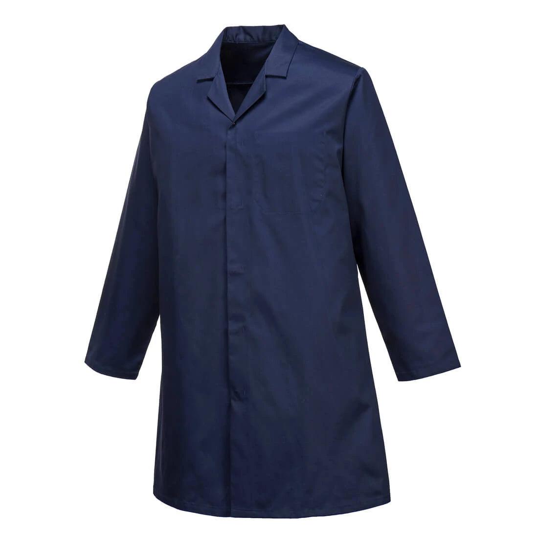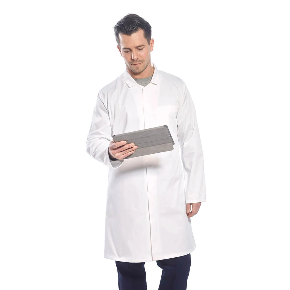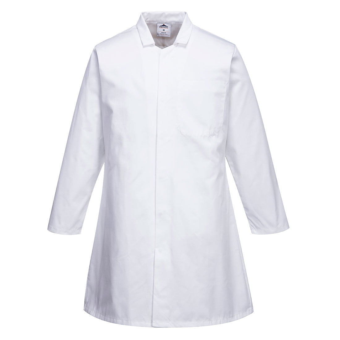 Halatul barbatesc Portwest 2202 este conceput special pentru profesionistii din industria alimentara, oferind protectie optima si confort exceptional in medii de lucru exigente. Confectionat din tesatura twill durabilă de inalta calitate (65% poliester, 35% bumbac, 245g/mp), acest halat asigura rezistenta excelenta la uzura si retinere superioara a culorii chiar si dupa multiple spalari. Materialul durabil isi pastreaza aspectul profesional spalare dupa spalare, facandu-l ideal pentru utilizare zilnica in bucatarii profesionale, fabrici de procesare alimentara, brutarii, patiserii si unitati HORECA.